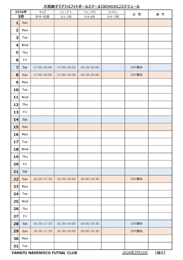 ◎2026年3月開催スケジュール