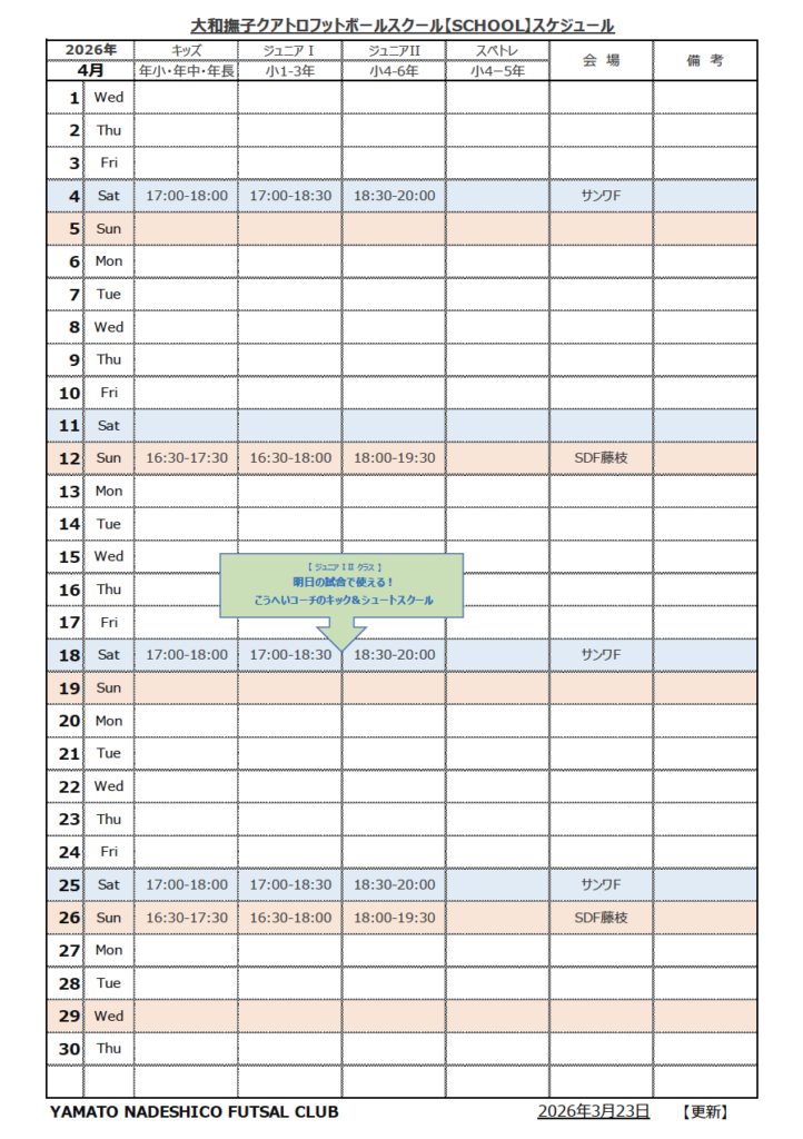 大和撫子クアトロフットボールスクール事務局